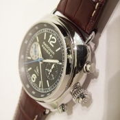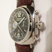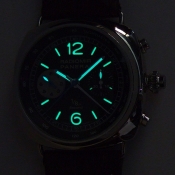 2.1936年沛納海為義大利海軍製作之原型(Radiomir系列), Radiomir 1/8 秒閃電雙追針腕錶保持原創設計,更加入機械計時碼錶中最不可能的任務--1/8 秒閃電雙追針,可以計時至1/8秒,成為收藏家眼中難得的收藏品.
