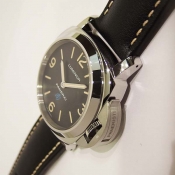 簡述: 沛納海 Paneristi 第 4 版紀念錶/ 型號:PAM00634/ R字頭僅限量500只/ 採Panerai OP I 手上鏈機芯/ 機芯為:16 1/2法分ˋ17石ˋ單一金屬Glucydur擺輪ˋ每小時擺率21600次ˋIncabloc防震裝置ˋ動力儲存約56小時/ 具時ˋ分指示/ 錶殼 44mm 亮面316L鋼材質/ 卡入式錶底蓋/ 磨砂特殊龍頭護橋(PANERAI專利)/ 黑色錶盤,舊化處理夜光時標及阿拉伯數字/ 藍寶石水晶玻璃,厚度3.5毫米,抗反光塗層/ 防水100米/ 附原廠黑色牛皮錶帶1條/ 配大型精鋼錶扣.
