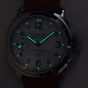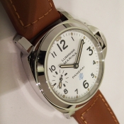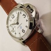 簡述: 沛納海 Luminor Base 商標基本款專賣店限定款/ 型號:PAM00660/ S 字頭限量1500只/ 採Panerai OP I 手上鏈機芯/ 機芯為:16 1/2法分ˋ17石ˋ單一金屬Glucydur擺輪ˋ每小時擺率21600次ˋIncabloc防震裝置ˋ動力儲存約56小時/ 具時ˋ分ˋ秒指示/ 錶殼 44mm 亮面316L鋼材質/ 嵌入式錶底蓋/ 磨砂特殊龍頭護橋(PANERAI專利)/ 白色錶盤,夜光時標及阿拉伯數字, 6 點方位藍色 OP 創廠 LOGO/ 藍寶石水晶玻璃,厚度3.5毫米,抗反光塗層/ 防水達100米/ 附原廠棕色牛皮錶 1 條/ 配大型精鋼錶扣.