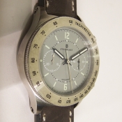 簡述: MARINE-CHRONOGRAPH BEIGE 44 mm 甲板觀測官計時碼錶/ 型號:C0410/ 採瑞士 ETA 2824-2自動上鏈機芯,機芯有49顆紅寶石/ 具時ˋ分ˋ秒指示/ 計時碼錶功能/ 灰色面盤/ 夜光阿拉伯數字及標誌線時標/ 銀色計時碼錶指針/ 鋼質霧面處理錶殼/ 大型軍錶錶冠/ 手錶尺寸: 44mm 錶徑ˋ厚:16mmˋ重 125 公克 / AR 塗層防眩藍寶石水晶玻璃鏡面(內部邊緣是抗反射的刃角)/ 底蓋刻印有大型桅桿帆船圖樣/ 搭配 22mm 灰色軍錶帶/ 原廠ㄇ型(一般)錶扣/ 防水: 30米.