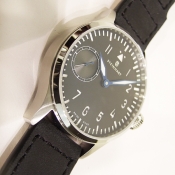 簡述: Nav B-Uhr 47 ST 1 Premium ANTHRAZIT/ 型號:106-0305 / 搭配 ETA Unitas-1 機芯/ 機芯為:17石ˋ動力儲存:42小時, 16 1/2法分/ 具時ˋ分ˋ秒指示/ 錶殼鋼質/ 黑色面盤,深灰獨立秒針盤/ 夜光阿拉伯數字及標誌線時標/ 夜光藍鋼色指針/ 手錶尺寸: 47mm錶徑,厚:14.2mm,重:125 公克/ 防眩塗層藍寶石水晶玻璃鏡面/ 透明錶底蓋/ 搭配 22 X 18 mm 黑色牛皮錶帶/ 原廠折疊式錶扣/ 防水: 30米.