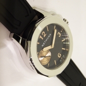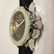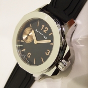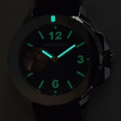 簡述: NETHUNS 義大利品牌潛水腕錶/ 限量299只/ 型號:7.1.2.7.03/ 採瑞士 Unitas 6497手上鏈機芯/ 機芯為:17石ˋ動力儲存:46小時/ 具時ˋ分ˋ指示/ 黑色三明治面盤, 9 點方位金色小秒針盤/ 阿拉伯數字時標及標誌線時標/ 銀色指針(具夜光效果)/ 可單向旋轉潛水外圈,可計算入水時間/ 手錶尺寸: 47mm錶徑/ 防炫藍寶石水晶玻璃鏡面/ 霧面鋼錶底蓋,厚:3.7mm/ 搭配 24mm 原廠黑色橡膠錶帶/ ㄇ字型鋼質錶扣/ 防水: 300米.