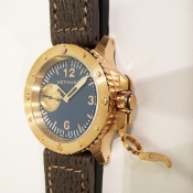 簡述: NETHUNS 義大利品牌青銅腕錶/ 型號:5.1.1.7.05/ 採瑞士 Unitas 6497-1 手上鏈機芯/ 機芯為:17石ˋ動力儲存:46小時/ 具時ˋ分ˋ秒指示/ 藍色三明治面盤/ 阿拉伯數字及標誌線時標/ 青銅色指針(具夜光效果)/ 可單向旋轉潛水外圈,可計算入水時間/ 特殊錶冠護橋/ 手錶尺寸: 45mm錶徑/ 防炫藍寶石水晶玻璃鏡面/ 霧面鈦合金錶底蓋,厚:3.7mm/ 搭配 24mm 原廠黑色橡膠錶帶及咖啡色鯊魚皮錶帶方便更換/ ㄇ字型青銅質錶扣/ 防水: 300米.