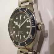 簡述: 復古型蠔式型潛水錶/ 採不銹鋼材質/ 採自動上鏈機芯,雙向自動上鏈/ 錶徑:41mm/ 具時ˋ分ˋ秒及日期顯示/ 黑色面盤/ 銀色立體螢光刻度時標/ 銀色螢光指針/ 深藍色簡易計時可單向旋轉外圈,可計算入水時間/ 旋入式大型錶冠,錶冠上有薔葳花標誌/ 旋入式底蓋/ 復古款弧形藍寶石水晶玻璃/ 原廠不銹鋼鏈帶及原廠黑色尼龍錶帶/ 防水深度 200 米.