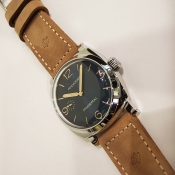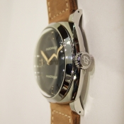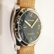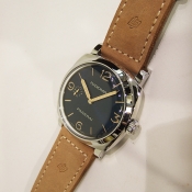 簡述: Radiomir 1940 3 Day - 47mm 3日鏈特別版腕錶/ 型號:PAM00690/ S 字頭限量製作500只/ 採自製編號:P.3000/1手上鏈機芯, 厚:5.3mm,16 1/2法分, 21石, 2 個發條盒,Glucydur平衡擺輪,每小石震頻 21,600次,Incabloc防震裝置,完全由PANERAI研製/ 具時ˋ分ˋ指示/ 金屬光放射紋路藍色面盤(三明治面盤)/ 舊化處理夜光指針及時標/ 錶徑: 47 mm/ 精鋼拋亮錶殼/ 旋入式錶冠/ ㄇ型鋼質扣頭/ 搭配原廠淺棕色錶帶/ 藍寶石水晶鏡面及透明錶背/ 防水達100米.