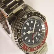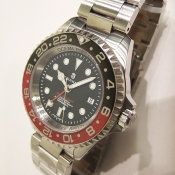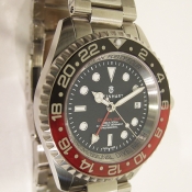 簡述: Steinhart 德國品牌潛水錶/ OCEAN Forty Four GMT Black-RED 300 米潛水腕錶/ 型號:103-0462/ 採瑞士 ETA2893-2 自動上鏈機芯,機芯為:21石,動力儲存:42小時/ 具時ˋ分ˋ秒指示及日期顯示及第 2 地時間指示/ 黑色面盤/ 夜光指針及標誌型時標/ 全錶拋霧 316 L 不鏽鋼材質/ 紅及黑色 24 時制錶圈,可供判讀第 2 第時間/ 手錶尺寸: 44mm 錶徑,厚:13.6 mm,重:205g / AR 塗層防炫礦石水晶玻璃/ 搭配原廠 22mm 蠔式錶帶及折疊式錶扣/ 防水: 300 米.