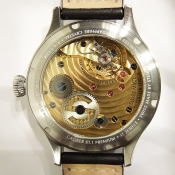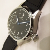 簡述: Nav B-Uhr 44 ST 1 Premium GOLD/ 型號:106-0301 / 搭配 ETA Unitas6497-1 機芯/ 機芯為:17石ˋ動力儲存:42小時, 16 1/2法分/ 具時ˋ分ˋ秒指示/ 錶殼鋼質/ 黑色面盤,深灰獨立秒針盤/ 夜光阿拉伯數字及標誌線時標/ 夜光藍鋼指針/ 手錶尺寸: 44mm錶徑,厚:14.2mm,重:107 公克/ 防眩塗層藍寶石水晶玻璃鏡面/ 透明錶底蓋/ 搭配 22 X 18 mm 黑色牛皮錶帶/ 原廠折疊式錶扣/ 防水: 30米.