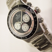 簡述: Ocean One Vintage Chronograph 計時碼錶/ 型號: 108-0629 / 採瑞士 ETA 2824-2自動上鏈機芯,機芯 51 顆紅寶石/ 具時ˋ分ˋ秒指示/ 計時碼錶功能/ 黑色面盤,白色計時圈/ 紅色標誌線時標/ 銀色計時碼錶指針及紅色計時標線/ 銀色指針(具夜光效果)/ 鋼質霧面處理錶殼/ 旋入式大型錶冠及計時按鈕/ 手錶尺寸: 42mm 錶徑ˋ厚:18mmˋ重 123 公克 / 防眩凸面藍寶石水晶玻璃鏡面/ 套明底蓋/ 搭配 22mm 原廠鋼質練錶帶及原廠折疊式錶扣/ 防水: 100米.