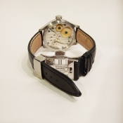 簡述: Steinhart 德國品牌/ Marine Regulateru Black 腕錶/ 型號:105-0640 / 採瑞士 Unitas 6498-1 手上鏈機芯/ 機芯為:17石ˋ動力儲存:42小時ˋ日納瓦波紋打磨/ 具時ˋ分ˋ秒指示(三針一線)/ 黑色面盤/ 標誌線時標/ 白色桃形指針/ 手錶尺寸: 42mm錶徑,厚:14.2mm,重:125 公克/ AR 塗層藍寶石水晶玻璃鏡面/ 透明錶底蓋/ 搭配 22mm 黑色牛皮錶帶/ 折疊式鋼質錶扣/ 防水: 30米.