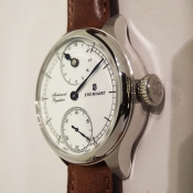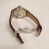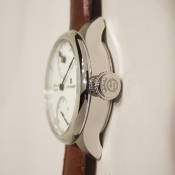 簡述: Steinhart 德國品牌/ Marine Regulateru white 腕錶/ 型號:105-0641 / 採瑞士 Unitas 6498-1 手上鏈機芯/ 機芯為:17石ˋ動力儲存:42小時ˋ日納瓦波紋打磨/ 具時ˋ分ˋ秒指示(三針一線)/ 白色面盤/ 標誌線時標/ 藍色桃形指針/ 手錶尺寸: 42mm錶徑,厚:14.2mm,重:125 公克/ AR 塗層藍寶石水晶玻璃鏡面/ 透明錶底蓋/ 搭配 22mm 棕色牛皮錶帶/ 折疊式鋼質錶扣/ 防水: 30米.