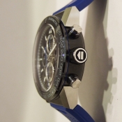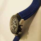 簡述: TAG HEUER CARRERA 計時碼錶/ 型號:FLHB-RWBH-7Z3M/ 採原廠 Calibre Heuer 01 自動上鏈機芯/ 具時ˋ分ˋ秒指示/ 計時碼錶功能/ 鏤空面盤/ 銀色標誌線時標/ 劍型銀色指針/ 黑色陶瓷計速表圈/ 鋼及黑色陶瓷霧面拋光處理錶殼/ 大型錶冠/ 手錶尺寸: 45mm 錶徑 / 防眩藍寶石水晶玻璃鏡面/ 透明後底蓋/ 搭配 29mm 原廠藍色橡膠錶帶(透氣孔設計)及黑色碳化鈦塗層鈦金屬摺疊錶扣,安全按鈕處理折疊式錶扣/ 防水: 100米.