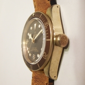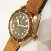 簡述: Heritage Black Bay 銅合金潛水腕錶/ 型號:79250 BM/ 採瑞自動上鏈機芯, 動力儲存:42小時,獲 C.O.S.C. 天文台認證/ 具時ˋ分ˋ秒指示/ 咖啡色面盤/ 夜光指針及標誌型時標/ 全錶霧面銅合金材質/ 咖啡色單向旋轉外圈,可計算入水時間/ 手錶尺寸: 43mm 錶徑/ 防炫藍寶石水晶玻璃/ 搭配原廠棕色牛皮錶帶及ㄇ形川扣錶扣/ 防水: 200 米.