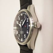 簡述: 馬克 41mm 飛行員腕錶/ 型號:IW326501/ 採瑞士自動上鏈機芯/ 具時ˋ分ˋ秒指示/ 3點方位日期顯示窗/ 黑色面盤/ 白色阿拉伯數字及標誌線時標(具夜光效果)/ 黑邊指針(具夜光效果)/ 鋼質霧面拋光處理錶殼/ 大型軍錶錶冠/ 手錶尺寸: 41mm 錶徑 / 防眩藍寶石水晶玻璃鏡面/ 鋼質後底蓋/ 搭配 20mm 黑色鱷魚皮錶帶/ 原廠ㄇ型一般穿扣/ 防水: 60米.