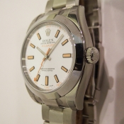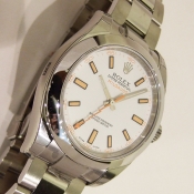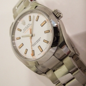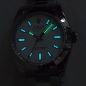 簡述: Milgauss 抗磁腕錶/ 型號:116400/ V 字頭/ 採自動上鏈機芯/ 機芯編號:3130, 具天文台認證(C.O.S.C.)/ 錶徑40mm/ 具時ˋ分ˋ秒針(秒針為橘色閃電針)指示/ 白色面盤/ 夜光指針及時標/ 錶盤內圈刻有一圈防偽 ROLEX 字樣及流水號碼/ 藍寶石水晶玻璃鏡面/ 原廠蠔式鏈帶及折疊式錶扣/ 防水100米.