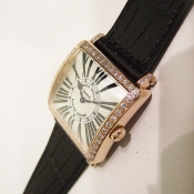 簡述: MASTER SQUARE 腕錶/ 型號:6002 M QZ REL R D 1R/ 採石英機芯/ 具時ˋ分指示/ 銀白色放射狀水波暗紋錶面/ 獨特具藝術感黑色羅馬數字時標/ 桃型藍鋼指針/ 18K玫瑰金錶殼,原廠原鑲鑽圈,原廠 18K 玫瑰金ㄇ字帶扣/ 手錶尺寸:32 X 32 mm/ 藍寶石水晶鏡面/ 搭配原廠黑色鱷魚皮錶帶/ 日常生活防水 30 米.