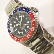 簡述: OCEAN Forty Four GMT BLUE-RED 潛水腕錶/ 型號:103-0656/ 採瑞士 ETA2893-2 自動上鏈機芯,機芯 21 石, 動力儲存:42小時/ 具時ˋ分ˋ秒指示及日期顯示,第 2 地時間指示針/ 黑色面盤, 6 點方位印有 OCEAN GMT 單排紅字/ 夜光指針及標誌型時標/ 全錶拋霧 316 L 不鏽鋼材質/ 藍及紅色旋轉外圈,可查第 2 第時間/ 手錶尺寸: 44mm 錶徑,厚:13.6 mm ,重 215 克 / 防炫藍寶石水晶玻璃/ 搭配原廠蠔式錶帶及折疊式錶扣/ 防水: 300 米.
