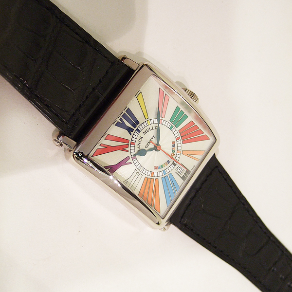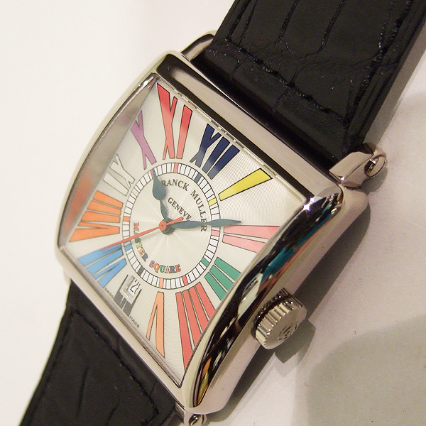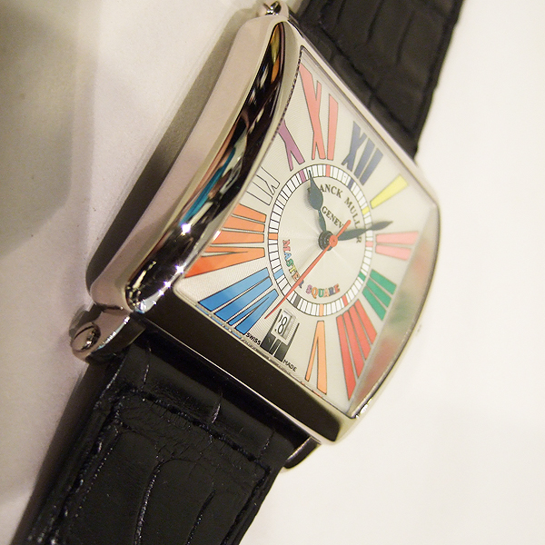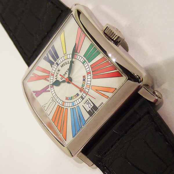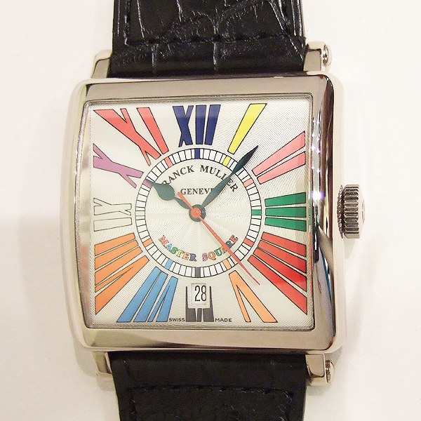 簡述: MASTER SQUARE 腕錶/ 型號:6000 H SC DT/ 採自動機芯/ 具時ˋ分ˋ秒指示/ 白色錶面/ 獨特具藝術感彩色色羅馬數字時標/ 桃型藍鋼指針/ 18K白金錶殼,原廠 18K 白金ㄇ字帶扣/ 手錶尺寸:36 X 36 mm/ 藍寶石水晶鏡面/ 搭配原廠黑色鱷魚皮錶帶/ 日常生活防水 30 米.