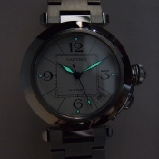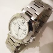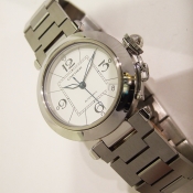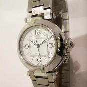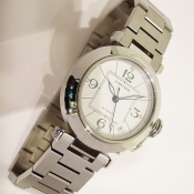 簡述: Pasha C 腕錶/ 型號:W31074M7/ 採自動上鏈機心/ 機芯為:25石 ˋ 28800vph ˋ 約40小時動力儲存/ 具時ˋ分ˋ秒指示/ 白色錶面搭配3.6.9.12黑色阿拉伯數字及標線型時刻度/ 夜光時及分指針 / 4~5點間方位日期窗 / 錶徑:35 mm / 藍寶石水晶鏡面/ 原廠鋼質鏈帶及折疊式錶扣/ 防水100米/ 已停產的經典錶款.