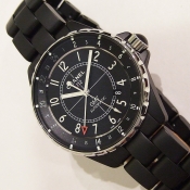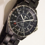 簡述: J 12 自動 GMT 腕錶/ 採用自動上鏈機芯/ 具時ˋ分ˋ秒指示/ 4~5 點間日期視窗/ GMT 地 2 地時間指示/ 黑色錶面/ 阿拉伯數字時標/ 銀色指針,具夜光效果/ 全錶採抗磨耗黑色消光精密陶瓷材質/ 鋼質摺疊式錶扣/ 錶徑:42mm/ 藍寶石水晶鏡面/ 防水 100 米.