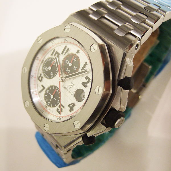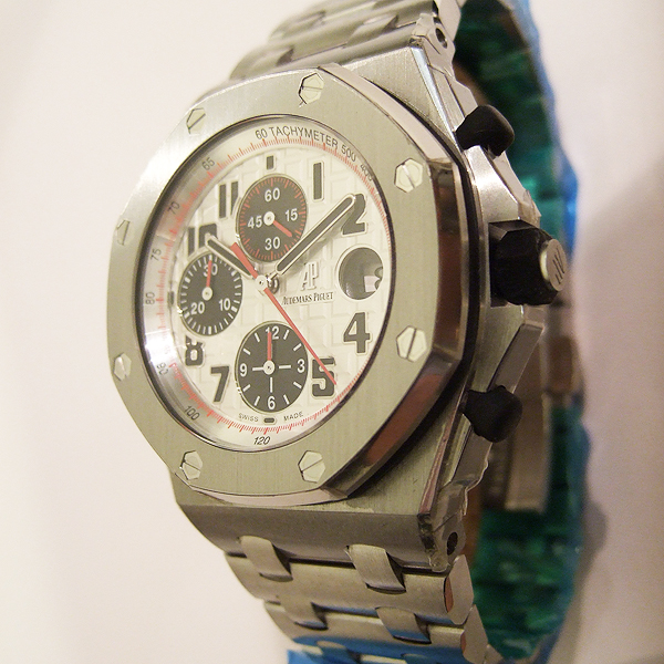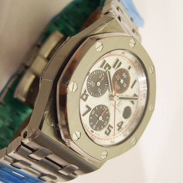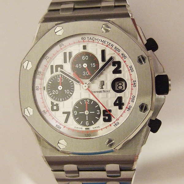 簡述: 皇家橡樹離岸型潛水錶/ 型號:26170ST.00.1000ST.01/ 採自動上鏈機芯/ 錶徑:42mm,厚:14.23mm / 具時ˋ分ˋ小秒針及計時碼錶功能和 3 點方位日期顯示窗/ 白色格紋面盤,搭配黑色計時錶圈,紅色計時指針/ 阿拉伯數字時標/ 機芯編號:3126,機芯為: 21K金自動盤,雙向自動上鏈,動力儲存約 50 小時/ 藍寶石水晶玻璃/ 防水100米/ 搭配原廠鋼質鏈帶及鋼質折疊式錶扣.