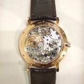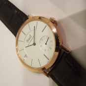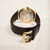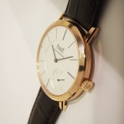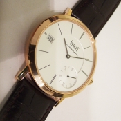 簡述: Altiplano Double Jeu Serial 超薄腕錶/ 型號:GOA34002/ 採原廠自動上鏈機芯,編號:832P,19顆紅寶石/具時ˋ分ˋ秒指示/ 9 點方位日期窗顯示/ 米白色面盤/ 黑色標誌立體時標/ 藍鋼指針/ 18 K金亮面拋光處理錶殼/ 手錶尺寸: 40 mm 錶徑,厚 6.2 mm/ 寶石水晶玻璃鏡面/ 透明後底蓋/ 搭配 20mm 原廠深咖啡色鱷魚皮錶帶/及原廠18K玫瑰金材質一般行穿扣/ 日常防水:30米