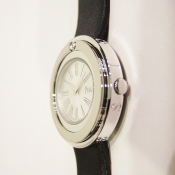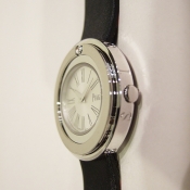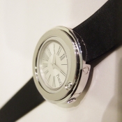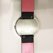 簡述: 伯爵女裝腕錶/ 型號:GOA35083/ 採原廠石英機芯,機芯編號:157 P / 具時ˋ分指示/ 銀白色錶面/ 藝術感黑色羅馬數字時標/ 劍型銀色指針/ 18K白金錶殼,原廠原鑲一顆鑽飾(約0.02克拉),原廠 18K 白金ㄇ字帶扣/ 手錶尺寸表逕為 29 mm/ 藍寶石水晶鏡面/ 搭配原廠黑色裐面皮錶帶/ 日常生活防水 30 米.