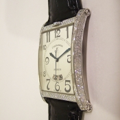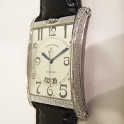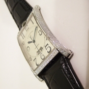 簡述: 瑞寶鋼質鑽錶/ 型號: CH 2873 FP-SI/ 採瑞士自動上鏈機芯/ 具時ˋ分ˋ秒指示, 6 點方位日期顯示窗/ 銀色面盤/ 黑色阿拉伯數字及標誌線時標/ 藍色指針/ 鋼質錶殼原廠原鑲鑽(共約314顆,共約2.72克拉)/ 透明後底蓋/ 錶冠於錶殼 12 點鐘方向/ 手錶尺寸: 寬36mm,長56mm / 藍寶石水晶玻璃鏡面/ 搭配原廠 28mm 黑色鱷魚皮錶帶/ ㄇ字錶扣/ 日常防水: 30米.