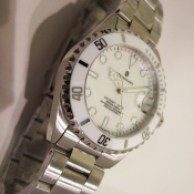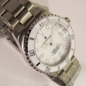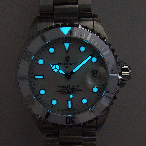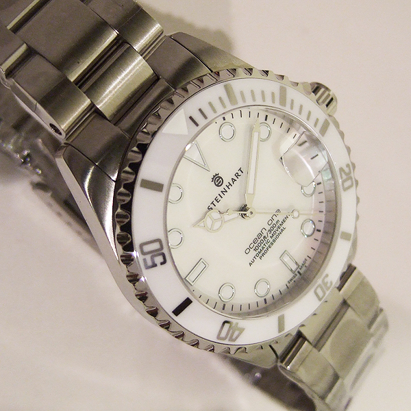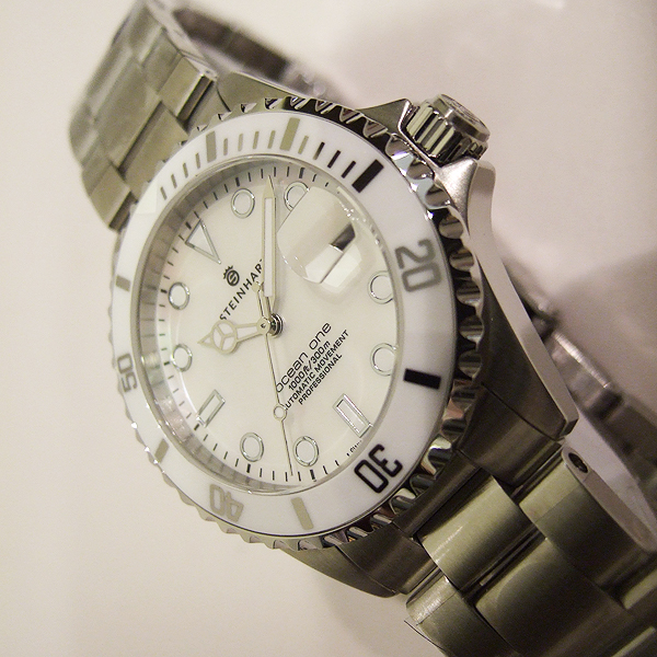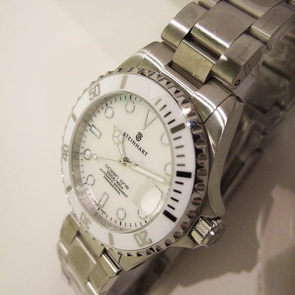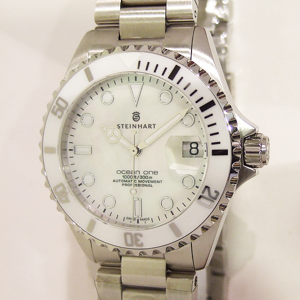 簡述: Steinhart 德國品牌潛水錶/ OCEAN One 39 white 腕錶/ 型號:103-0722/ 採瑞士 ETA2824-2 自動上鏈機芯, 25 顆紅寶石, 動力儲存:42小時/ 具時ˋ分ˋ秒指示及 3 點方位日期顯示/ 白色珍珠母貝色面盤/ 夜光指針及標誌型時標/ 全錶拋霧 316 L 不鏽鋼材質/ 白色陶瓷材質單向旋轉外圈,可計算入水時間/ 手錶尺寸: 39mm 錶徑,厚:13mm , 重 170 克/ 防炫藍寶石水晶水晶玻璃(3 點方位日期放大鏡)/ 搭配原廠蠔式錶帶及折疊式錶扣/ 防水: 300 米.