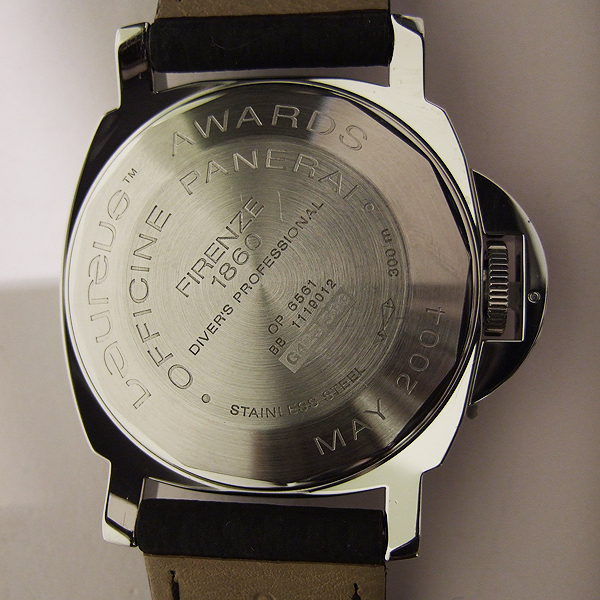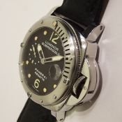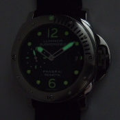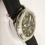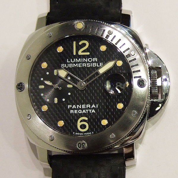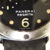 簡述: Luminor Submersible 2004 REGATTA 帆船大獎賽限量專業潛水錶/ 型號:PAM-00199/ 2004年僅限量發售 500 只/ 採用 Panerai OP III 自動上鏈機芯/ 機芯為:21石,每小時擺率 28800次,Incabloc 防震裝置 ,動力儲存約42 小時,獲天文台認證(C.O.S.C)/ 具時ˋ分ˋ小秒針指示及日期顯示,可計算潛水時間錶外圈/ 錶殼 44mm 316L 拋光或霧鋼材質/ 黑色碳纖維錶面, 6 點方位 REGATTA 字樣/ 夜光指針及時標/ 藍寶石水晶鏡面/ 防水達300米/ 附黑色碳纖維面織法替代用牛皮錶帶及ㄇ型.一般穿扣.