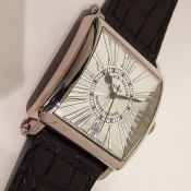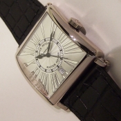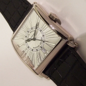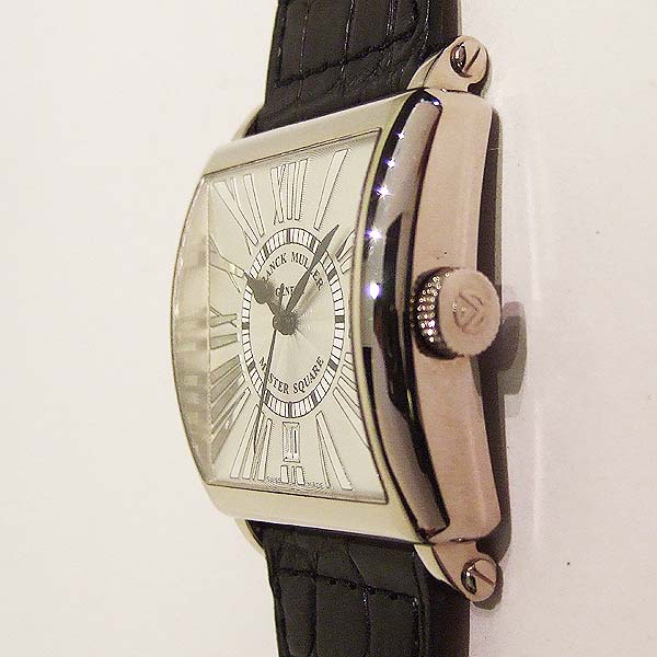 簡述: MASTER SQUARE 腕錶/ 型號:6000 H SC DT/ 採自動機芯/ 具時ˋ分ˋ秒指示/ 銀白色放射狀水波錶面/ 獨特具藝術感亮銀色羅馬數字時標/ 桃型藍鋼指針/ 18K白金錶殼,原廠 18K 白金ㄇ字帶扣/ 手錶尺寸:35 X 35 mm/ 藍寶石水晶鏡面/ 搭配原廠黑色鱷魚皮錶帶/ 日常生活防水 30 米.