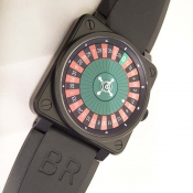 簡述: CASINO 造型限量腕錶/ 型號:BR-01-92-CA-BE/ 全球限量 99 只/ 採自動上鏈機芯(Cal:ETA 2892)/ 機芯為:鍍銠機芯魚鱗紋打磨ˋ因加百錄避振器ˋ雙向自動上鏈ˋ21顆紅寶石ˋ每小時振頻:28800次/ 錶徑: 46 X 46mm/ 具時ˋ分ˋ秒指示(仿造俄羅斯輪盤方式顯示時間)/ 俄羅斯輪盤面盤/ 夜光時標及指針/ 旋入式錶冠/ 藍寶石水晶玻璃鏡面/ 防水100米/ 附原廠軍規尼龍錶帶及黑色橡膠錶帶含ㄇ字扣/ 盒內附有內 6 角鏍絲拆換工具 1 組方便自行拆換錶帶.