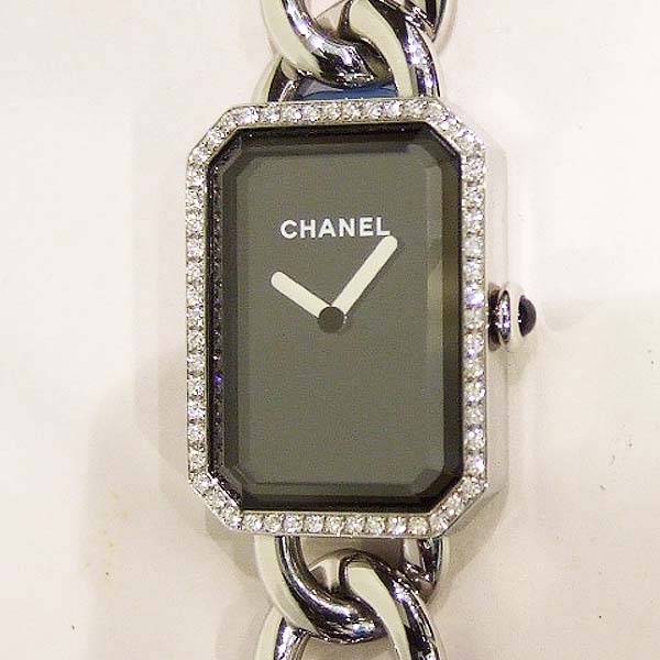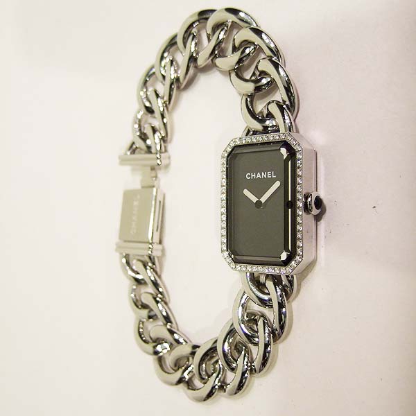 簡述: CHANEL 手鏈腕錶/ 型號:H3250/ 採用石英機芯/ 具時ˋ分指示/ 黑色錶面/ 後鑲鑽石錶圈/ 銀色指針/ 全錶採 316L 精鋼材質/ 手錶尺寸: 28 X 20mm,全錶長度含錶扣共約 19 cm/ 藍寶石水晶鏡面/ 日常生活防水 30 米.