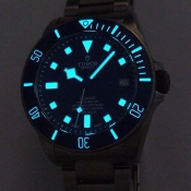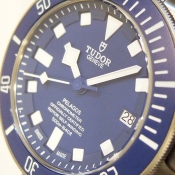 簡述: 蠔式型潛水錶/ 採鈦合金材質/ 採自動上鏈機芯/ 錶徑:42mm/ 具時ˋ分ˋ秒及日期顯示/ 藍色面盤/ 白色立體夜光刻度時標/ 白色夜光指針/ 藍色簡易計時可單向旋轉外圈,可計算入水時間/ 旋入式大型錶冠,錶冠上有 TUDOR 廠徽標誌/ 錶殼左側設有排氦氣閥/ 旋入式底蓋/ 藍寶石水晶玻璃/ 原廠鈦合金鏈帶及原廠藍色橡膠錶帶附潛水用家常橡膠帶/ 防水深度 500 米.