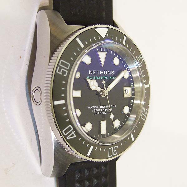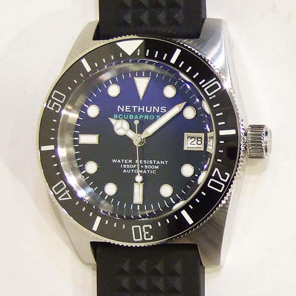 簡述: NETHUNS 義大利品牌 SCUBAPRO 500米 潛水腕錶/ 型號:SPS512/ 採日本精工 NH35 自動上鏈機芯/ 機芯為:24石ˋ動力儲存約:40小時/ 具時ˋ分ˋ秒指示, 3 點方位日期窗/ 藍漸變黑色面盤/ 立體時標(具夜光效果)/ 不鏽鋼材質錶殼,錶冠於 3 點方位,排氦筏 9 點方位/ 銀色指針(具夜光效果)/ 黑色陶瓷可單向旋轉潛水外圈,可計算入水時間/ 手錶尺寸: 41mm錶徑/ 藍寶石水晶玻璃鏡面/ 霧面鋼錶底蓋/ 搭配 22mm 原廠黑色橡膠錶帶/ ㄇ字型一般鋼質穿扣/ 防水: 500米.
