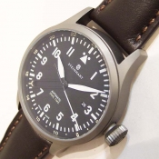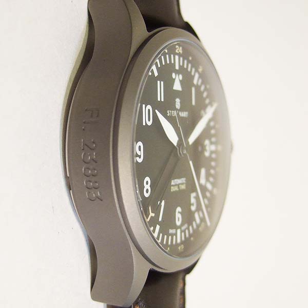 簡述: Nav B-Uhr 44 Dual Time Titanium 飛行員軍錶/ 型號: 107-0758/ 採瑞士自動上鏈機芯/ 動力儲存約:42小時/ 具時ˋ分ˋ秒指示,第 2 地時間指示, 3 點方位日期視窗/ 黑色面盤/ 白阿拉伯數字及標誌線時標(具夜光效果)/ 白色邊緣指針(具夜光效果)及時標/ 鈦合金霧面噴砂舊化處理錶殼,鋼質透明後底蓋/ 大型軍錶旋入式錶冠/ 手錶尺寸: 44mm 錶徑ˋ厚:14.2mmˋ重 85 公克 / 藍寶石水晶玻璃鏡面/ 搭配 22mm 深咖啡色牛皮錶帶/ ㄇ字錶扣/ 防水: 100米.