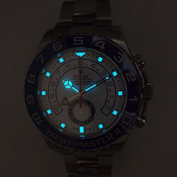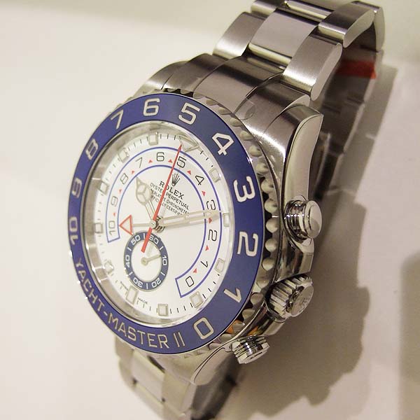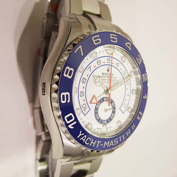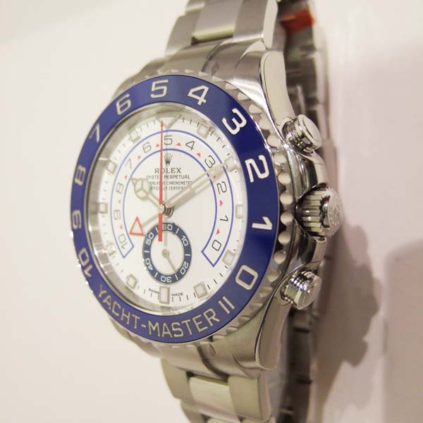 簡述: YACHT-MASTER II 遊艇名仕腕錶/ 型號:116680/ 亂碼字頭/ 採自動上鏈機芯/ 機芯編號:4165機芯為:鍍銠機芯有魚鱗紋及日內瓦波紋打磨,42石,五方位調校,KIF避震裝置,雙層鈮鋯合金游絲(具天文台認證 C.O.S.C),高抗震,抗磁專利Parachrom游絲/ 錶徑:44mm/ 具時ˋ分ˋ秒ˋ10 分鐘到計時指示功能/ 白色面盤,黑色賓士型指針,有防偽刻印錶圈/ 夜光時標及指針/ 單向旋轉式藍色陶瓷錶圈/ 藍寶石水晶玻璃/ 904L不鏽鋼材質原廠鏈帶及折疊式帶扣/ 防水深度達100米.
