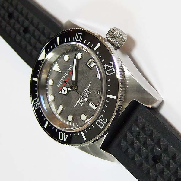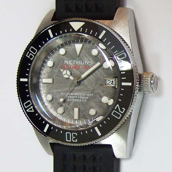 簡述: NETHUNS 義大利品牌 SCUBAPRO 500米 潛水腕錶/ 磒石面全球限量 299 只/ 型號:SPS510/ 採日本精工 NH35 自動上鏈機芯/ 機芯為:24石ˋ動力儲存約:40小時/ 具時ˋ分ˋ秒指示, 3 點方位日期窗/ 灰色磒石面盤/ 立體時標(具夜光效果)/ 不鏽鋼材質錶殼,錶冠於 3 點方位,排氦筏 9 點方位/ 銀色邊指針(具夜光效果)/ 黑色陶瓷可單向旋轉潛水外圈,可計算入水時間/ 手錶尺寸: 41mm錶徑/ 藍寶石水晶玻璃鏡面/ 霧面鋼錶底蓋,刻有限量編號/ 搭配 22mm 原廠黑色橡膠錶帶/ ㄇ字型一般鋼質穿扣/ 防水: 500米.
