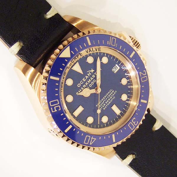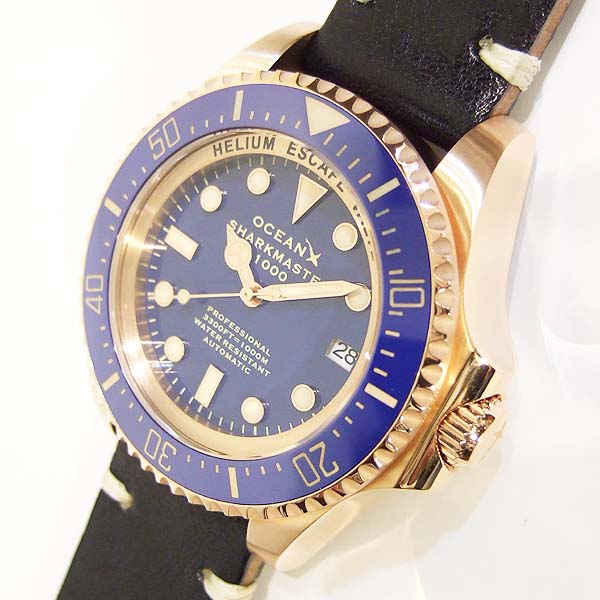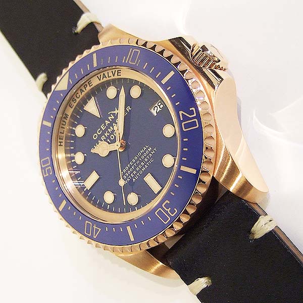 簡述: OCEAN 潛水腕錶/ 型號:SMS1002/ 採 SEIKO NH35 自動上鏈機芯,動力儲存約:41小時, 24 顆紅寶石,28800vph/ 寶藍色錶盤/ 具時ˋ分ˋ秒指示,3點方位日期顯示窗/ 夜光立體時標及標誌線時標/ 可單向旋轉寶藍色陶瓷潛水錶圈,可計算入水時間/ 手錶尺寸: 44 mm,厚:15.5mm/ 藍寶石水晶玻璃/ 全錶 316 L 鋼材質(PVD玫瑰金色),錶殼左側有排氦氣閥/ 搭配原廠咖啡色牛皮錶帶及 ㄇ型一般穿扣/ 防水 1000 米.