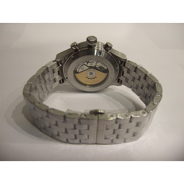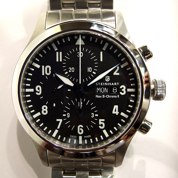 簡述: Nav B-Chrono 44, mit Stahlband 飛行員計時碼錶/ 型號:108-0266/ 採瑞士 ETA VALJOUS 7750自動上鏈機芯/ 具時ˋ分ˋ秒指示/ 3點方位日期及星期顯示窗/ 計時碼錶功能/ 黑色面盤/ 白色阿拉伯數字及標誌線時標(具夜光效果)/ 藍鋼指針(具夜光效果)/ 鋼質亮或霧面拋光處理錶殼/ 大型軍錶錶冠/ 手錶尺寸: 44mm 錶徑ˋ厚:16mmˋ重 122公克 / 防眩藍寶石水晶玻璃鏡面/ 透明後底蓋/ 搭配原廠 22mm 鋼質鏈錶帶/ 原廠摺疊式錶扣/ 日常防水: 30米.