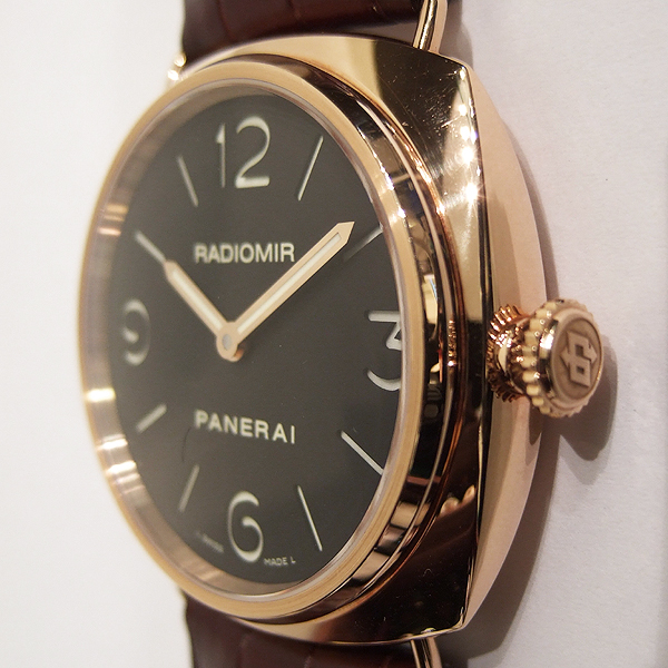 簡述: Radiomir Base 45mm 腕錶/ 型號:PAM-00231/ J 字頭限量 500 只/ 採用 Panerai OP X 手動上鏈機芯/ 機芯為:每小時擺率 28800次ˋIncabloc防震裝置ˋ 動力儲存約 52 小時/ 具時ˋ分指示/ 黑色錶面(三明治式)/ 夜光指針及刻度/ 錶殼直徑:45mm,18 K 玫瑰金材質/ 搭配原廠黑色鱷魚皮錶帶,18 K 玫瑰金ㄇ型錶扣(普通穿扣)/ 藍寶石水晶鏡面及透明後底蓋/ 防水達100米.