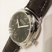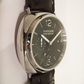 簡述: Radiomir 10 Days 10日鏈動力儲存日期腕錶/ 型號:PAM-00320/ M 字頭限量500只/ 採自製編號:P.2003/5 自動上鏈機芯,完全由PANERAI研製,機芯有3個發條盒, 10 日鍊動力儲存/ 具時ˋ分ˋ小秒指示 ,3 點方位日期顯示, 10 天動力儲存顯示於錶盤 6 點方位/ 錶徑: 45 mm/ 316L 精鋼拋光錶殼/ 黑色面盤/ 夜光指針及時標/藍寶石水晶玻璃鏡面及後底蓋/ 防水達100米/ 搭配原廠黑色鱷魚皮錶帶及ㄇ字錶扣(一般扣).