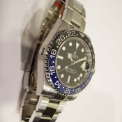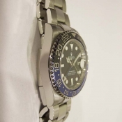 GMT-MASTER II 格林威治型天文台錶/型號:116710BLNR/ 採自動上鏈機芯/機芯編號:3186/ 機芯採用新研發的寶璣式雙層鈮鋯合金藍色鋼,31顆紅寶石, 五方位調校,雙層合金游絲,有四顆微調快慢螺絲,橫跨式擺輪橋板,KIF避振裝置,天文台認證(C.O.S.C.)/ 錶徑:40mm/ 具時ˋ分ˋ秒針指示及 3 點方位日期顯示窗,可轉動外圈配 CERACHROM 字圈及24小時指針,可獨立調校的12小時指針,方便同時顯示兩地時間/ 黑色面盤/ 夜光指針及時標/ 黑及藍色雙色陶瓷合金雙向旋轉外圈/ 錶盤內圈刻有一圈防偽 ROLEX 字樣及流水號碼/ 藍寶石水晶玻璃鏡面/ 原廠不鏽鋼蠔式錶帶及折疊式錶扣/ 防水100米.