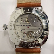 Radiomir 8 天動力儲存腕錶/ 型號:PAM00190/ G 字頭限量 500 只/ 採用 OP XI 手上鏈機芯/ 機芯為:每小時擺率21600次ˋ動力儲存長達 8 天顯示於錶背動力儲存指示盤/ 具時ˋ分ˋ秒指是/ 錶殼: 45mm 拋光精鋼材質/ 旋入式錶冠上刻有 PANERAI O.P 標誌/ 藍寶石水晶鏡面/ 黑色面盤/ 三明治夾板錶面 6 點方向印有 8 DAYS 字樣/ 金色指針/ 原廠黑色鱷魚皮錶帶及ㄇ形錶扣(一般扣)/ 防水達100米.