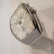 簡述: VANGUARD 系列腕錶/ 型號:V 45 SC DT / 採自動上鏈機芯/ 具時ˋ分ˋ秒指示 6 點方位日期視窗/ 白色錶面/ 獨特具藝術感白色銀邊阿拉伯數字時標(時標點具夜光效果)/ 白色指針(具夜光效果)/ 鋼質錶殼,原廠鋼質摺疊扣/ 手錶尺寸: 53.7 X 44 mm/ 藍寶石水晶鏡面/ 搭配原廠白色橡膠蒙鱷魚皮錶帶/ 日常生活防水 30 米