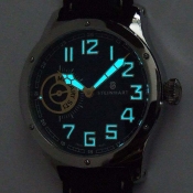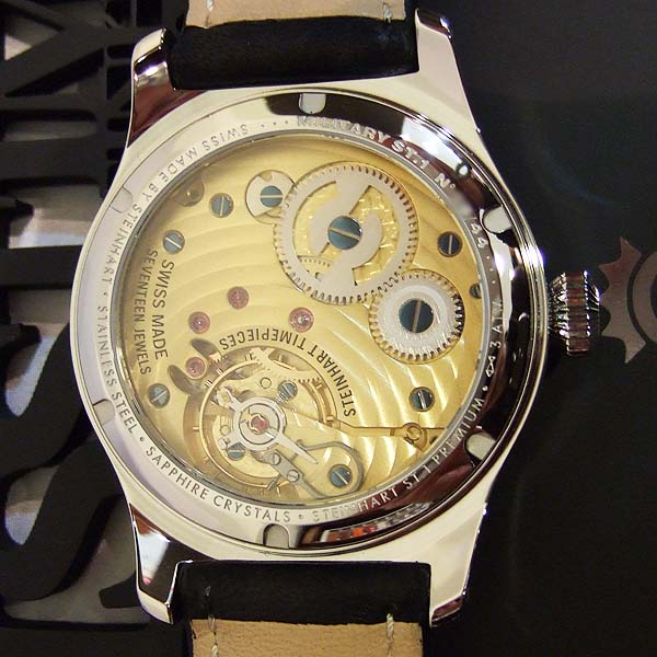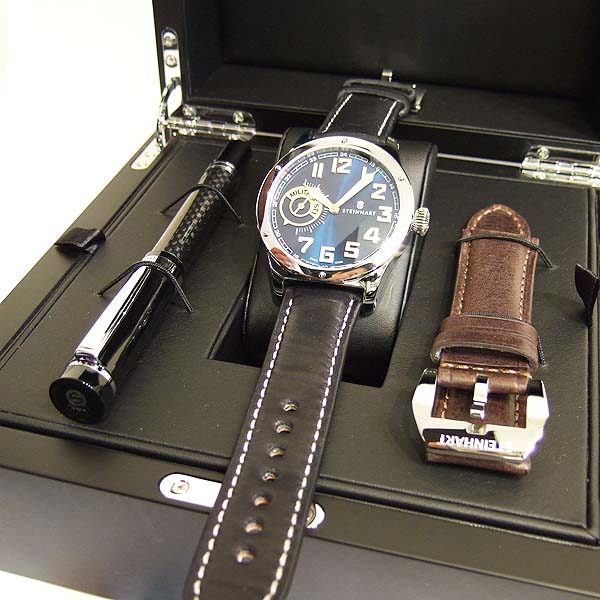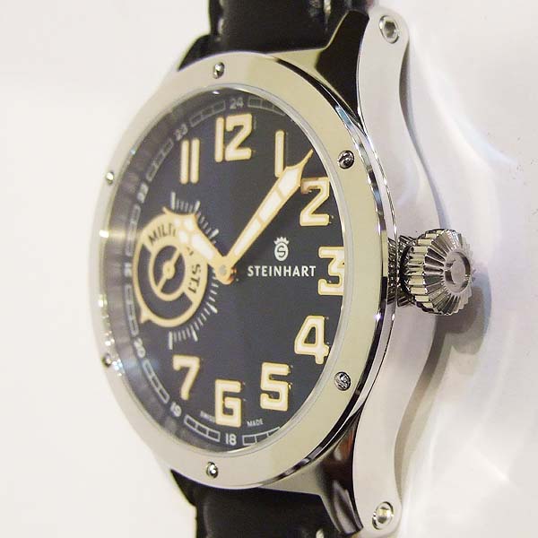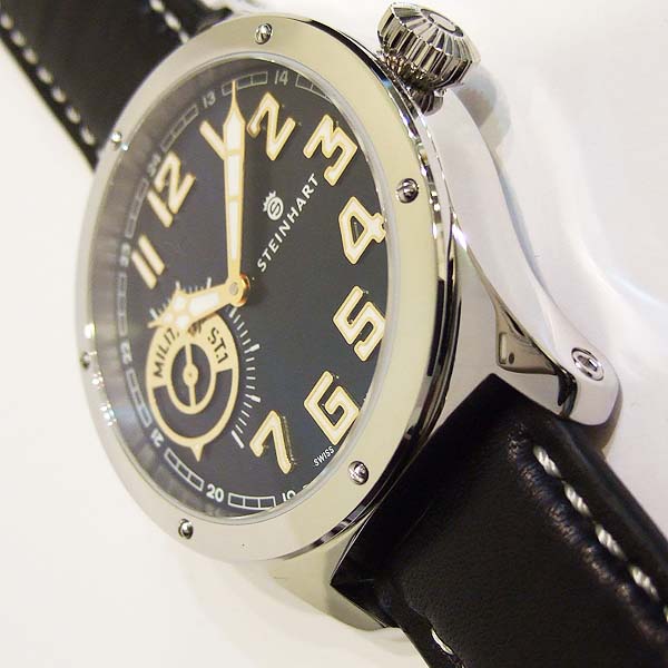 Steinhart 德國品牌軍錶/ MILITARY 47 ST1 blue Ltd. Edition/ 型號:109-0937/ 全球限量: 44 只/ 採用 STEINHART ST1 Premium 手上鏈機芯/ 機芯為:17石ˋ動力儲存:42小時/ 具時ˋ分ˋ秒指示/ 藍色面盤/ 金邊阿拉伯數字及標誌線時標/ 金色指針(具夜光效果)/ 9 點方位金色圓形秒針盤,上刻有 MILITARY ST.1 字樣/ 手錶尺寸: 47mm錶徑,厚:15mm,重:132 公克/ AR 塗層藍寶石水晶玻璃鏡面/ 透明錶底蓋/ 搭配 24mm 黑色牛皮錶帶/ ㄇ字型鋼質錶扣/ 日常生活防水: 30米.