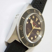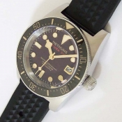 NETHUNS 義大利品牌 SCUBA 500米 潛水腕錶/ 型號:SS522/ 採日本精工 NH35 自動上鏈機芯/ 機芯為:24石ˋ動力儲存約:40小時/ 具時ˋ分ˋ秒指示, 3 點方位日期窗/ 咖啡色面盤/ 舊化立體時標(具夜光效果)/ 不鏽鋼材質錶殼,錶冠於 3 點方位,排氦筏 9 點方位/ 舊化金色邊斧頭型指針(具夜光效果)/ 黑色陶瓷可單向旋轉潛水外圈,可計算入水時間/ 手錶尺寸: 42mm錶徑/ 藍寶石水晶玻璃鏡面/ 霧面鋼錶底蓋,刻有序號/ 搭配 22mm 原廠黑色橡膠錶帶/ ㄇ字型一般鋼質穿扣/ 防水: 500米.