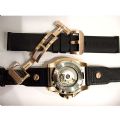 1.附原廠保單/盒子. 2.特色:此品牌夜光塗料都經過最少六次以上塗裝,所以夜光效果特佳,此款因採特殊夜光塗料,所以夜光會呈現極高亮度及色澤. 3.原廠附加黑色牛皮鉚釘式錶帶及黑色橡膠錶帶各一條,2 種錶帶一次滿足.