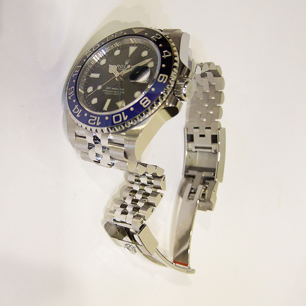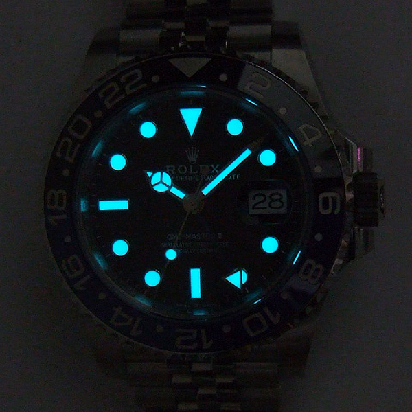 簡述: GMT-MASTER II 格林威治型天文台錶/型號:126710BLNR/ 採自動上鏈機芯/機芯編號:3285/ 機芯全由勞力士研發製作, 共獲得 10 項專利,配置 Chronergy 擒縱系統,動力儲存約 70 小時,,天文台認證(C.O.S.C.)/ 錶徑:40mm/ 具時ˋ分ˋ秒針指示及 3 點方位日期顯示窗,可轉動外圈配 CERACHROM 字圈及24小時指針,可獨立調校的12小時指針,方便同時顯示兩地時間/ 黑色面盤/ 夜光指針及時標/ 黑及藍色雙色陶瓷合金雙向旋轉外圈/ 錶盤內圈刻有一圈防偽 ROLEX 字樣及流水號碼/ 藍寶石水晶玻璃鏡面/ 原廠不鏽鋼紀念型(Jubile)錶帶及折疊式錶扣/ 防水100米.