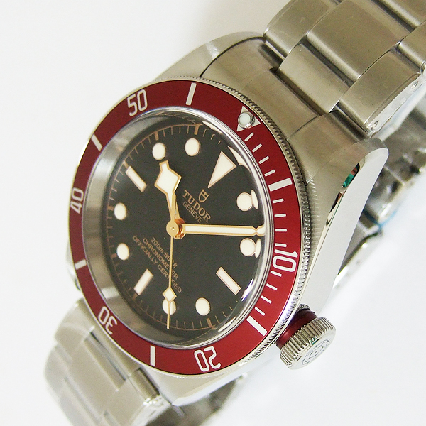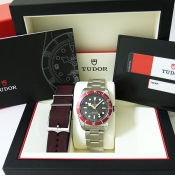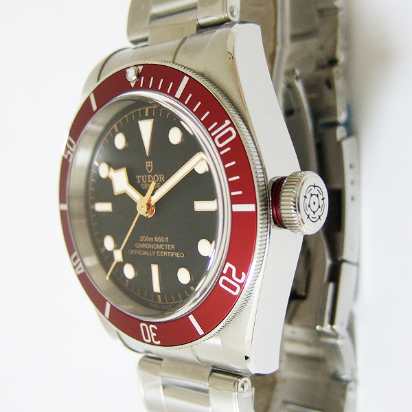 TUDOR 帝舵潛水腕錶/ 型號:79350R-72060/ 採原廠自製 MT5602 自動上鏈機芯,動力儲存約:70小時,獲C.O.S.C.天文台精準認證,雙向上鏈系統/ 黑色錶盤/ 具時ˋ分ˋ秒指示/ 金邊框時標及標誌線時標(具夜光功能)/ 金邊框雪花型指針/ 可單向旋轉紅色潛水錶圈,可計算入水時間/ 錶徑尺寸: 41 mm/ 藍寶石水晶玻璃/ 全錶 316 L 鋼材質/ 搭配原廠鉚釘鋼質鏈帶及折疊式錶扣/ 旋入式錶冠,刻有帝舵玫瑰標誌/ 防水 200 米.