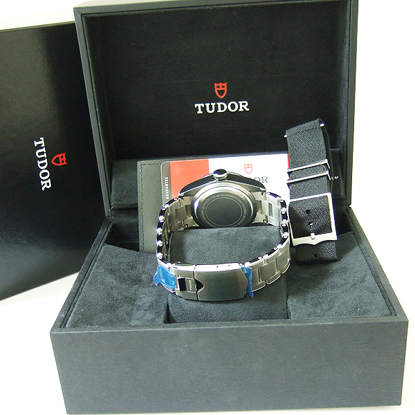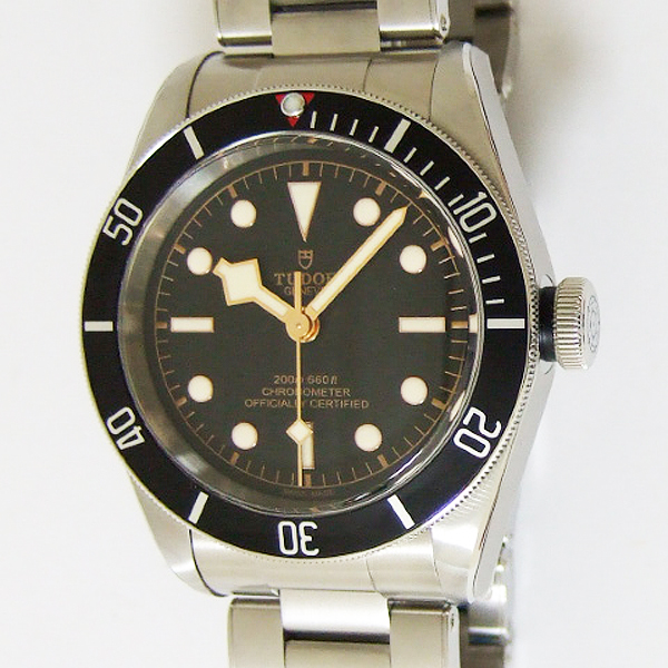 TUDOR 帝舵潛水腕錶/ 型號:79350N/ 採原廠自製 MT5602 自動上鏈機芯,動力儲存約:70小時,獲C.O.S.C.天文台精準認證,雙向上鏈系統/ 黑色錶盤/ 具時ˋ分ˋ秒指示/ 金邊框時標及標誌線時標(具夜光功能)/ 金邊框雪花型指針/ 可單向旋轉黑色潛水錶圈,可計算入水時間/ 錶徑尺寸: 41 mm/ 藍寶石水晶玻璃/ 全錶 316 L 鋼材質/ 搭配原廠鉚釘鋼質鏈帶及折疊式錶扣/ 旋入式錶冠,刻有帝舵玫瑰標誌/ 防水 200 米.